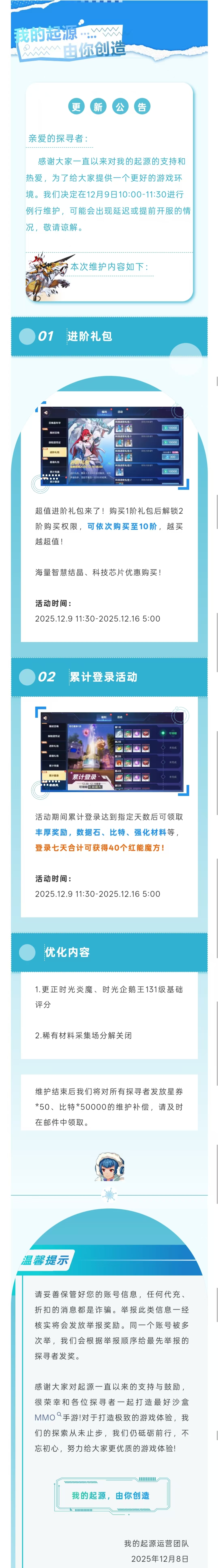 我的起源|12.9先行服更新公告|累计登录活动来袭!超值进阶礼包上架!