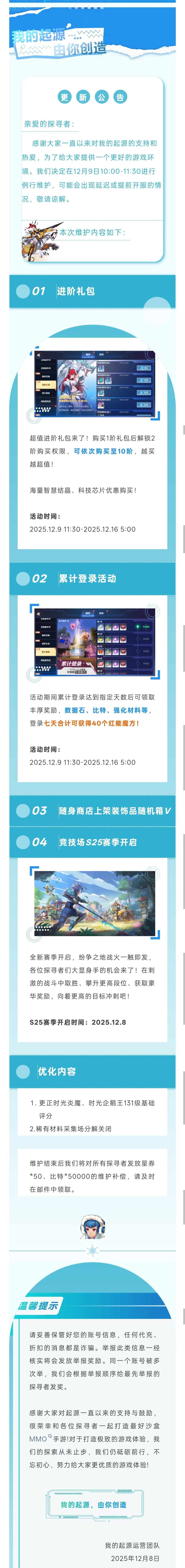 我的起源|12.9正式服更新公告|累计登录领好礼~竞技场S25赛季开启!